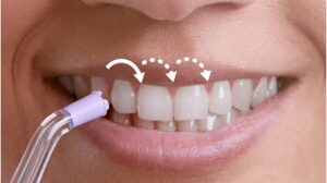 X 型の 4 方向に広がる水流が歯間や歯と歯ぐきの間の汚れをしっかり除去、簡単に早く洗浄できます。